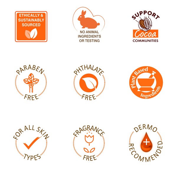 Cocoa Butter: Naturally harvested from cocoa beans, cocoa butter is is a rich, nutrient-packed super ingredient loaded with antioxidant CMPs (Cocoa Mass Polyphenols) for superior skin healing and moisture barrier protection.